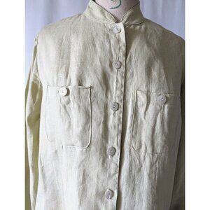 Current Women Long Tunic Oriental Green 100% Linen Button Down Size 8
