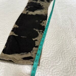 Bold tie-dye jeans with a unique pattern. Features black and cream hues. Perfect for making a statement.