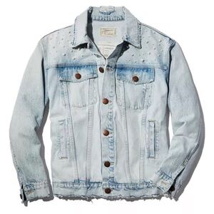 Current/Elliott Boyfriend Trucker studded distressed denim jean jacket - Large