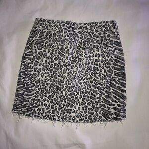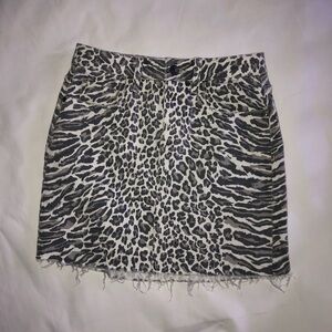 Current/Elliott Cheetah Denim Raw-hem Mini Skirt