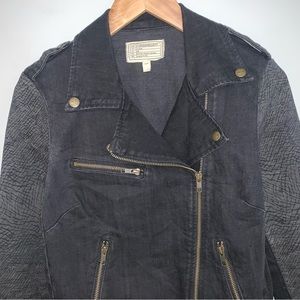 Current/Elliott "Easy Biker" Jacket Black Grey Dark Denim Moto Edgy Size Small