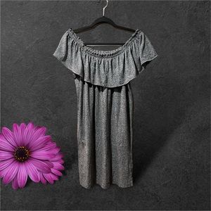 πCurrent/Elliott - Wear For Love/Love For Wear Heather Grey Mini Dress. Ladies size Small (Current/Elliott Size 1.) Elastic upper edge, wide ruffle at Top. Wear On or Off Shoulder. Small slits at side seams. Very soft fabric, comfortable & stretchy. Fabric tags have been removed but research determines: 50% Polyester/37% Cotton/13% Rayon. Perfect as a casual dress or as a cover-up.π