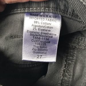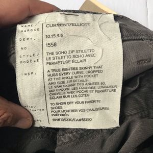 Current/Elliott Soho Stiletto corduroy pant. “The true 80s skinny that hugs every curve”. Cropped at the ankle, zippered pockets. Brand new with tags