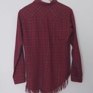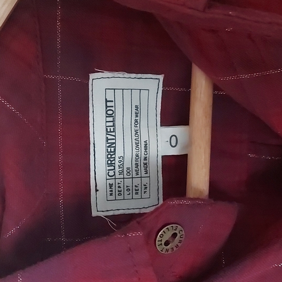 Current/Elliott The Prep School Fray Shirt Cotton Flannel Button Down Size XS. Would easily fit up to size medium. Excellent condition. Oversized. Burgundy with gold thread.