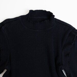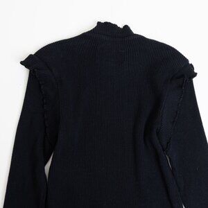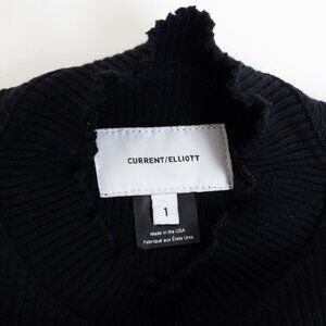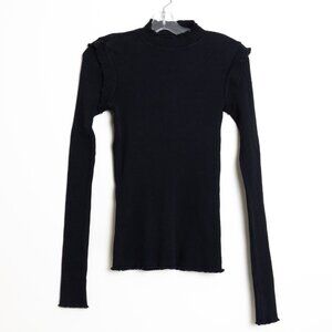 Current/Elliott The Ruffle Rib Top Black Ribbed Mock Neck Size 1