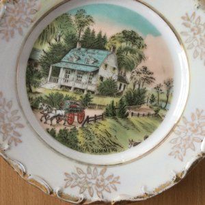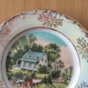 Currier and Ives summer plate made in Japan lusterware gold rim