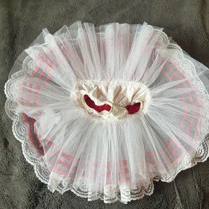 Curtain Call Soldier Costume in very good used condition, only worn once for recital. Costume has red velvet bodice with sequins on the front, lace around the neckline and 4 gold-coloured buttons. Tutu bottom has 3 layers and is white with red stripes and lace trim around the hemline. Size is CME (Child Medium). Top part is 90% polyester, 10% Lycra, skirt is 100% nylon. Dryclean only. Has name written on label. We do pack our items with care; however tutu will require steaming. Colour depends on device/screen settings and lighting in pictures. All measurements are approximate and may slightly vary. Measurements are taken by hand with item laying flat and unstretched. All items are from my smoke free home.