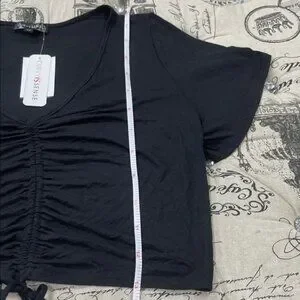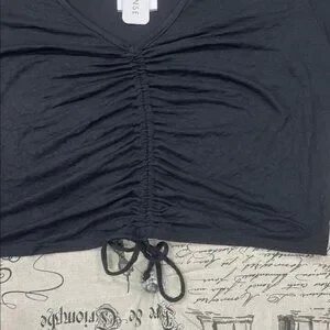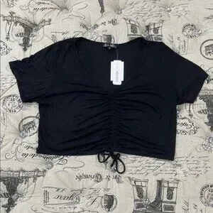 Elevate your style with this chic black crop top featuring a trendy drawstring detail. Perfect for any casual occasion.