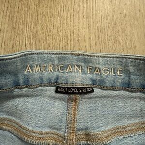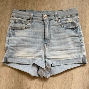 Experience the perfect blend of style and comfort with these high-waisted blue jean shorts from American Eagle Outfitters. Crafted from stretchy denim, they offer a flattering fit and a timeless look for any casual occasion.