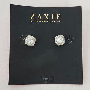 Cushion Cut Cubic Zirconia Halo Stud Earrings Zaxie By Stefanie Taylor NWT