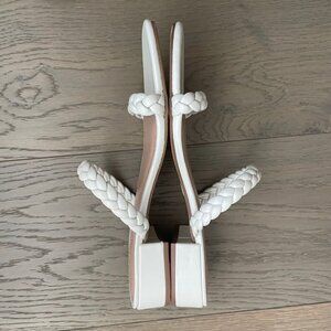 Cushionaire Neptune Braided Two Band Block Heel Vegan Leather Sandal in Ivory NWOT