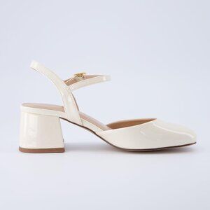Cushionaire Women's Cream Patent Memory Foam Wide Dancer Round Toe Block Heel