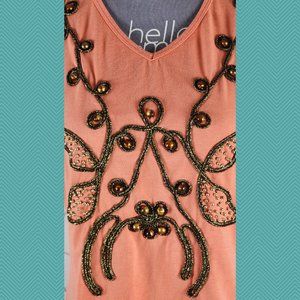 Custo Barcelona Orange Beaded Embroidered Cotton Tee