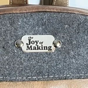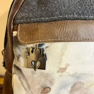 This is a custom made purse. My wife made it for herself and has used it. She is letting it go to make room for new bags she is making. It is made from Vinyl and hand picked fabrics.
