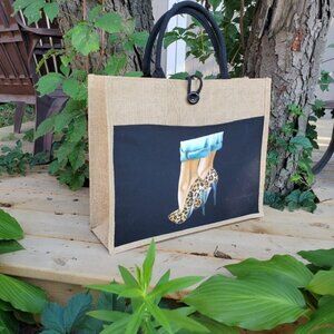 Custom Canvas Tote Bag, Large Size - Cheetah Heels Theme, Black or Cream Tote