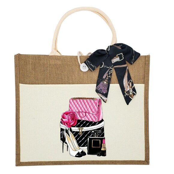 Custom Canvas Tote Bag, Large Size - Fashion Theme #9 - Cream Tote