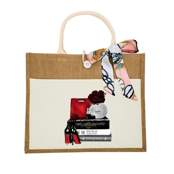 Custom Canvas Tote Bag, Large Size - Fashion Theme, Cream Tote