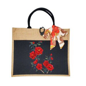 Custom Canvas Tote Bag, Large Size - Floral Theme, Black or Cream Tote
