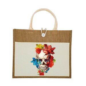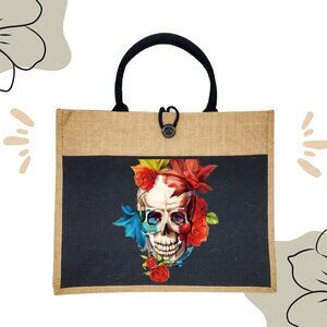 Custom Canvas Tote Bag, Large Size - Skulls Option #2 - Cream Tote or Black Tote