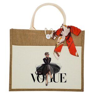 Custom Canvas Tote Bag, Large Size - Vogue Fashion Theme, Cream Tote