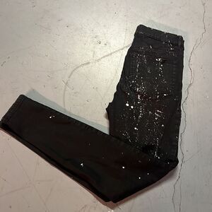 Custom DYNDNM Kate Upcycled Size 27 Black + White Paint Splatter Motto Jeggings