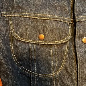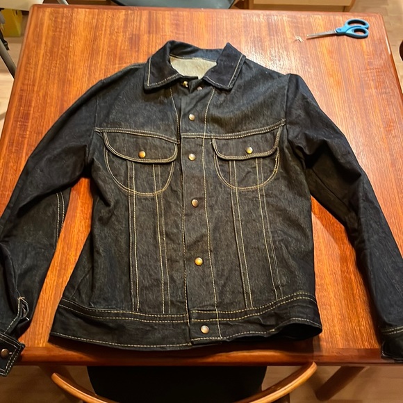 This jacket is a stunner. It just never fit quite right for me. The details and the stitching are incredible. I have no clue who made it or when. High quality denim, great little details. Amazing patina on the snap buttons