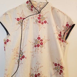 Had this dress made while working in China. Amazing seamstresses who take your measurements, you choose the fabric and they made you a garment in a day. It is delicate, so if you're looking for something to wear to work once a week, this may not be for you. If you're looking for a very pretty dress for events, this is a beautiful one. Size is small or even extra small for a petite frame. I am 5'6 and about 105 athletic pounds and love the fit.
