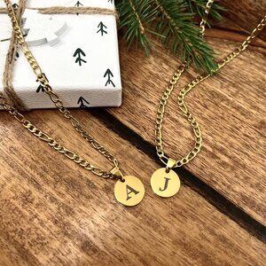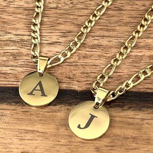 This amazing, 14k gold plated coin pendant and Figaro necklace is a perfect gift for yourself or someone special in your life! Create a special, personalized gift with an initial coin pendant.These are amazing, high quality pendants and necklaces that look great on and are comfy to wear! Both coin and the chain are hypoallergenic, made from surgical steel which is rust and tarnish resistant. Surgical stainless steel is very popular for its beautiful look without special care.