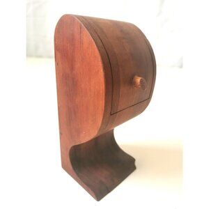 This is a small vintage hand made trinket box from the 1960s, made of wood featuring a brown color.