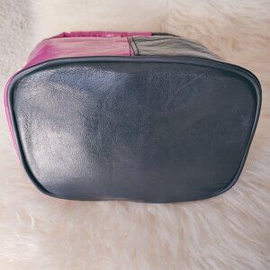 This black and pink-purple / fuchsia genuine leather handbag was barely used. I think it spent 90% of its life in my storage. It is a fun little handbag, but not my style anymore. Zipper opening, zipper interior pocket. Silver hardware. The imperfections on leather are so minimal that cannot be capture on camera; only if closely inspected. I took various photos of the inside, as you can see, that is is pristine condition.
