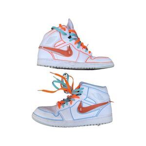 Custom Nike Air Jordan 1 Mid White Pure Platinum Swoosh Size 10.5