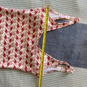 Custom One-Piece Bathing Suit from Miami made with flamingo pattern fabric local to Miami.