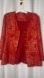 One of a Kind custom made stunning red paisley blazer. Heart shaped buttons. Cinched in at waist. Gold design. This was made uniquely for someone and now it’s being passed on to you. There is no material tag but the outershell is textured and the inner lining is likely polyester. There is no stretch so I’ve provided measurements. This is a stunning blazer, likely a size medium