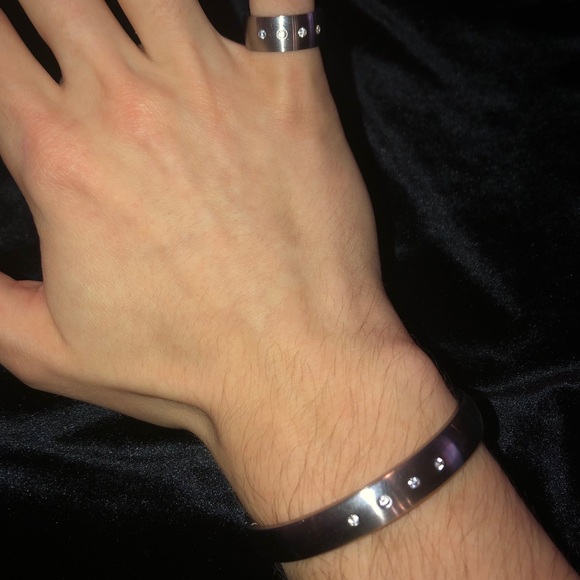 Custom cuff and ring. Stainless steel & titanium with stones. 64g tw. $150 OBO.