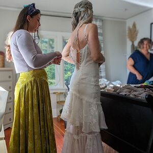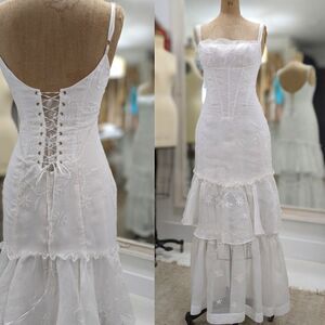 It's no coincidence that my own wedding dress was very similar, pictured somewhere in the mix in a side by side comparison. Proof that classic thoughtful design can stand the test of time. I made this & wore it at our 20th this past spring 2024. Our theme was "the Musician & the Seamstress". Open to offers.