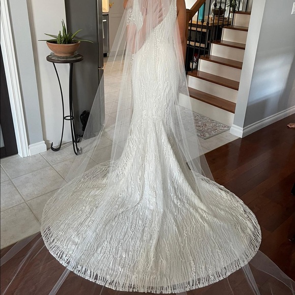 This dress is custom made, fits anywhere between an XXS - S and is a similar style / fit to the Pallas Couture Diorella Gown (pictured)