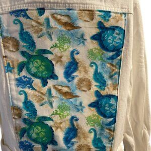 Custom White Jean Jacket - Ocean-Inspired Design - Size Large NWT