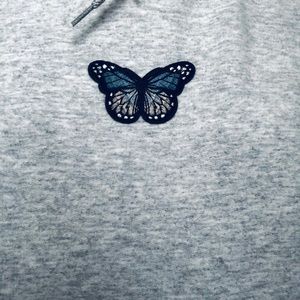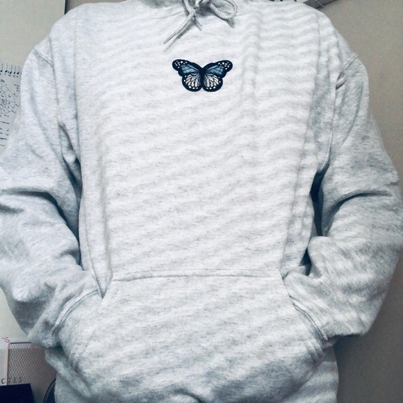 Light grey hoodie with blue butterfly patch