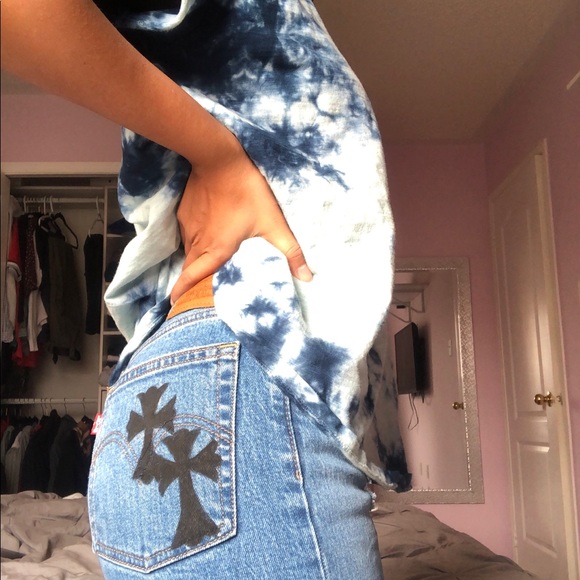 Custom jeans made by me. Chrome hearts design on the back right pocket. Size 24.