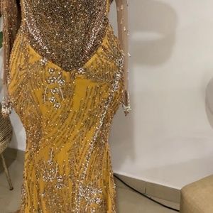 Selling a custom made dress. The dress is hand beaded and filled with beads and crystals from top to bottom. It was work once for about 3 hours. Perfect condition and dry cleaned.