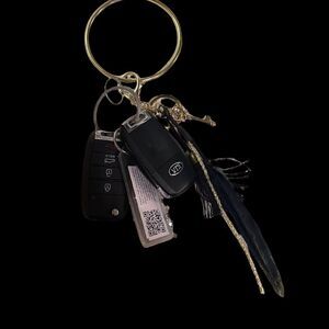 Beautifully handmade gold black wristlet keychains Bangle style Chic Feathers and tassels and charms Clip to clip on keys Custom Orders /Colours Available