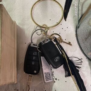 Custom Upcycled Gold + Black + White Bangle Wristlet Keychains