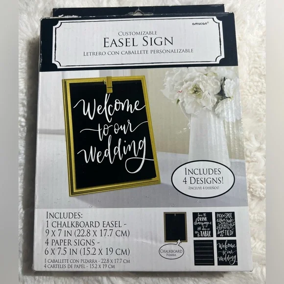 Includes 4 designs paper signs & 1 Chalkboard Easel