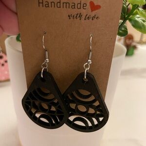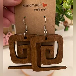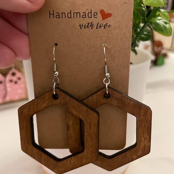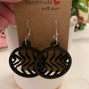 Custom-made earrings. Made by laser cutting. Constructed out of 3 mm Baltic birch. Hand paint hypoallergenic hoops.