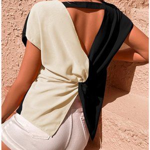 Cut Out Twist Back Batwing Sleeve Blouse Blk/Wht