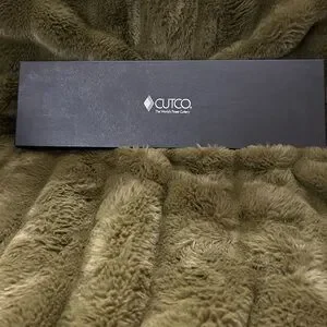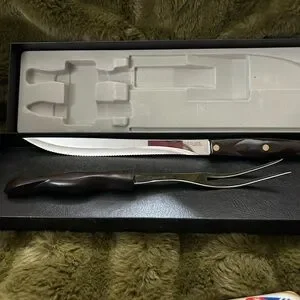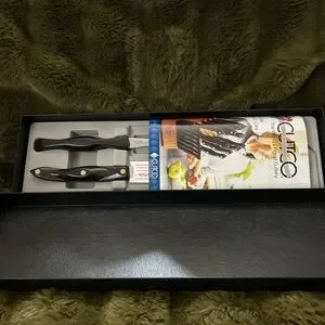 Stylish black case by Cutco. Ideal for keeping your accessories organized. Brand New in box-note-company name etched on the carving knife-never been used.