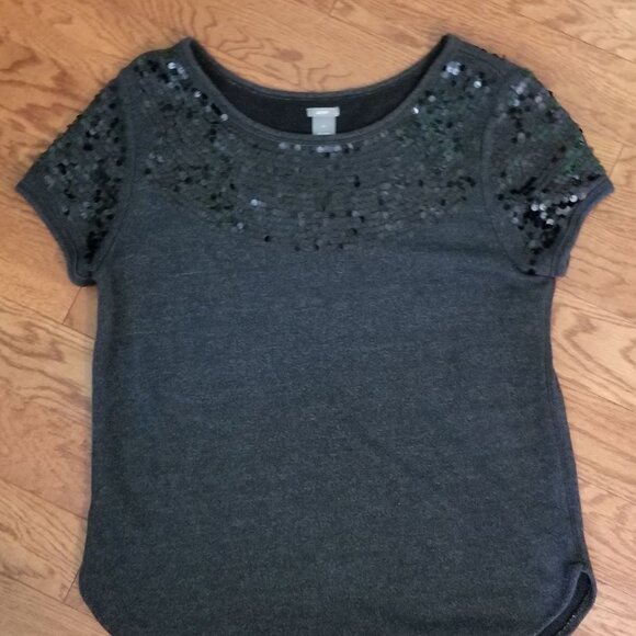 The last photo is with flash so you can see the sequin pattern, but the sweater colour is much darker