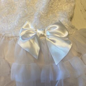 Cute Baby Dress for Photos. This is the perfect white dress for your baby’s photos on special occasion. Excellent condition, pure white tulle, rosettes and satin bow. 60% cotton, 40% polyester