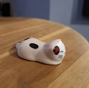 Adorable ceramic cat ring holder with red and black accents. Perfect for organizing jewelry.