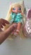 Adorable doll with long blonde hair and a stylish outfit. Comes with a quilted cat-shaped bag in shiny silver and pink.